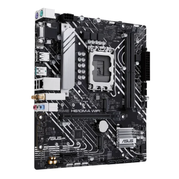 مادربرد ایسوس PRIME H610M-A WIFI DDR5، انتخابی ایدهآل برای کاربران حرفهای و گیمرها است که به دنبال پلتفرمی پایدار و کارآمد با پشتیبانی از جدیدترین فناوریها هستند. این مادربرد با چیپست H610 و قابلیت پشتیبانی از حافظه DDR5، عملکردی سریع و روان را تضمین میکند. بهعلاوه، اتصال بیسیم WIFI داخلی، امکانات شبکهای پیشرفته را فراهم میآورد. طراحی کامپکت Micro-ATX این مادربرد امکان نصب راحت در کیسهای کوچک را نیز دارد.