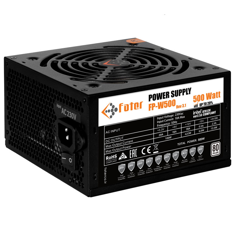 منبع تغذیه کامپیوتر 500 وات فاطر مدل FP-W500 80Plus 500W