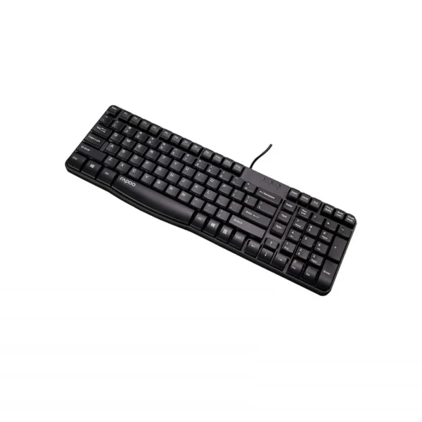 کیبورد رپو N2400 با ابعاد 392×129.5×29 میلیمتر و وزن 429 گرم، فضای کمی را اشغال میکند و بهراحتی قابل حمل است. این ویژگی، آن را برای استفاده در محیطهای کاری با فضای محدود یا حمل و نقل آسان مناسب میسازد. این کیبورد دارای 104 کلید با طراحی استاندارد است که تجربه تایپ راحتی را فراهم میکند.